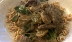 Een favoriet PS. Food & Lifestyle gerecht, de PS. Food & Lifestyle fusilli met een saus van gebakken kip, champignons, groene paprika/broccoli en roomkaas light.