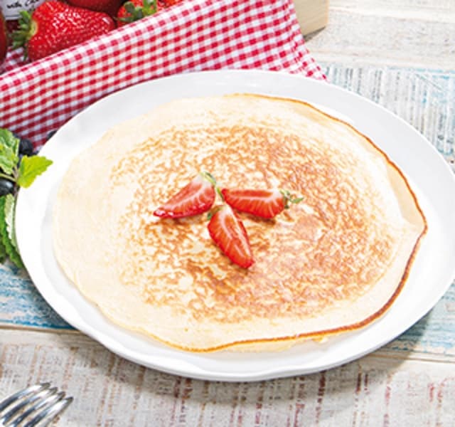 Doe 100 ml koud water in de shaker en meng met de inhoud van 1 zakje. Verhit ½ el olie in een anti-aanbakpan en bak de pannenkoek ca. 30 sec. aan beide zijden.