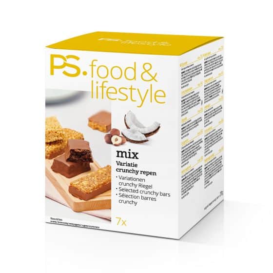 Benieuwd naar de crunchy repen uit het PS. food & lifestyle assortiment? Met het variatiedoosje kun je de diverse smaken eens proberen.